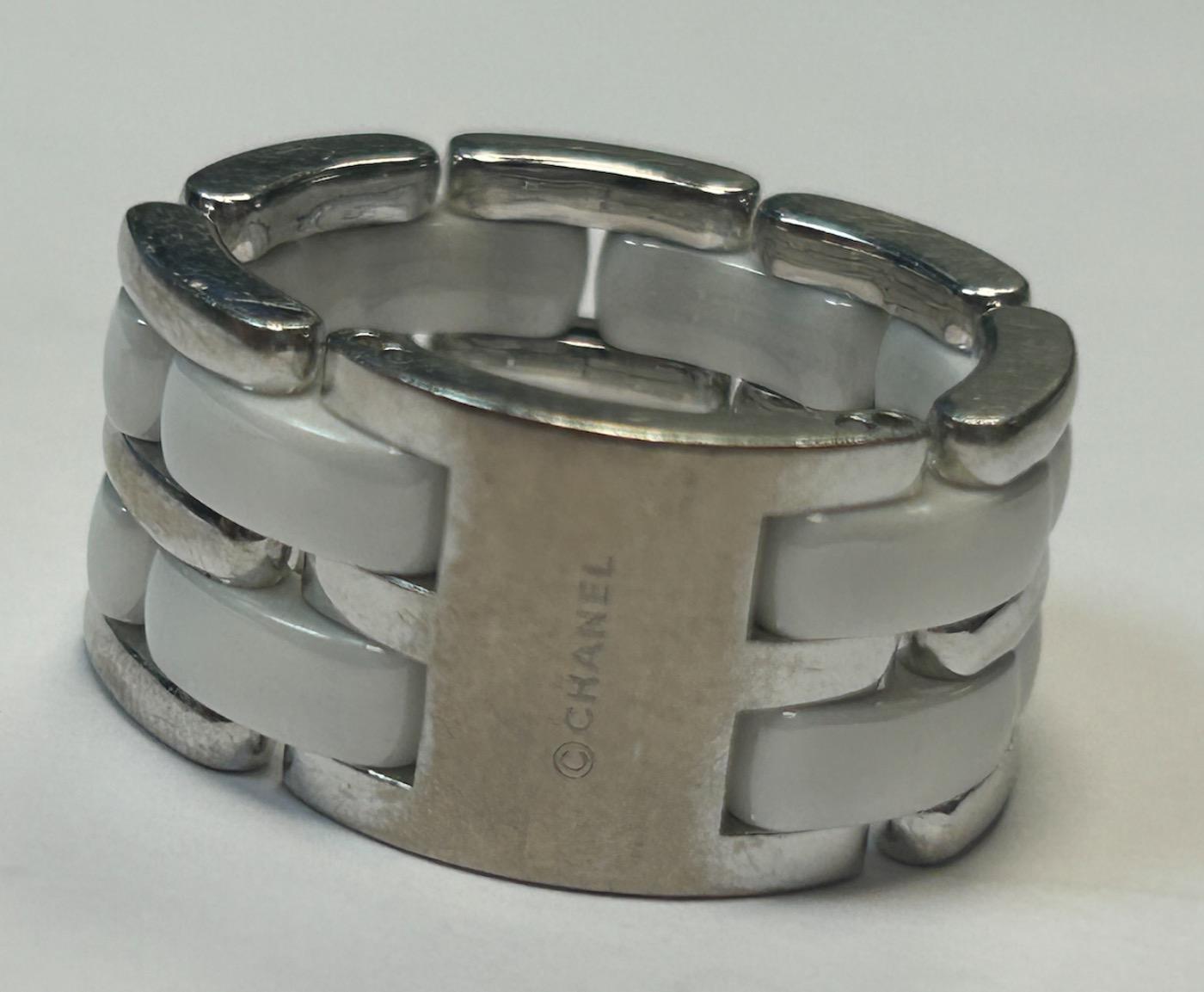 Bague CHANEL modèle "Ultra" En or blanc blanc 750‰ et céramique blanche En très bon état taille 55 , 18g