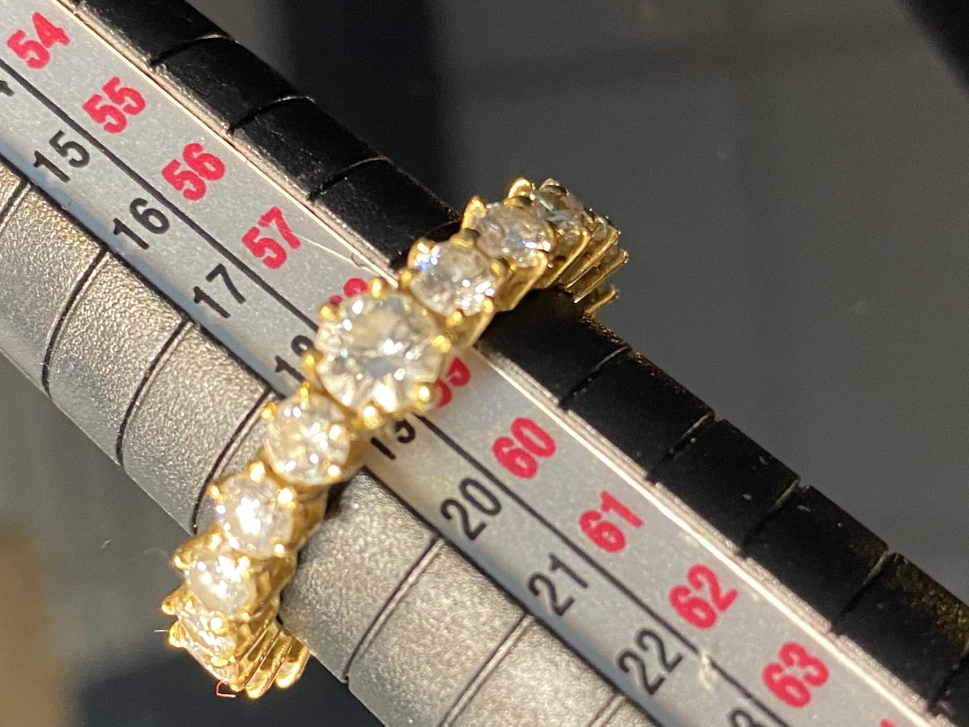 Sublime alliance américaine en or jaune 750‰ sertie de 21 diamants 1 diamant de 0,46ct 20 diamants de 0,7ct taille 59,la bague pèse 5,1 grammes en superbe état
