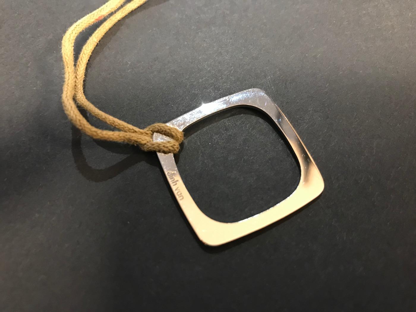 Superbe collier DINH VAN modèle Impression Pendentif en or blanc 750 cordon beige en très bon état