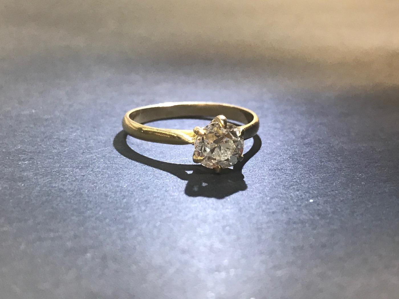 Sublime solitaire en or jaune 750‰ La bague est en très bon état ,vendue avec son certificat Le diamant fait 1,19 carat ,qualité VS le poids total du bijoux est de 2,7 grammes et c'est une taille 55