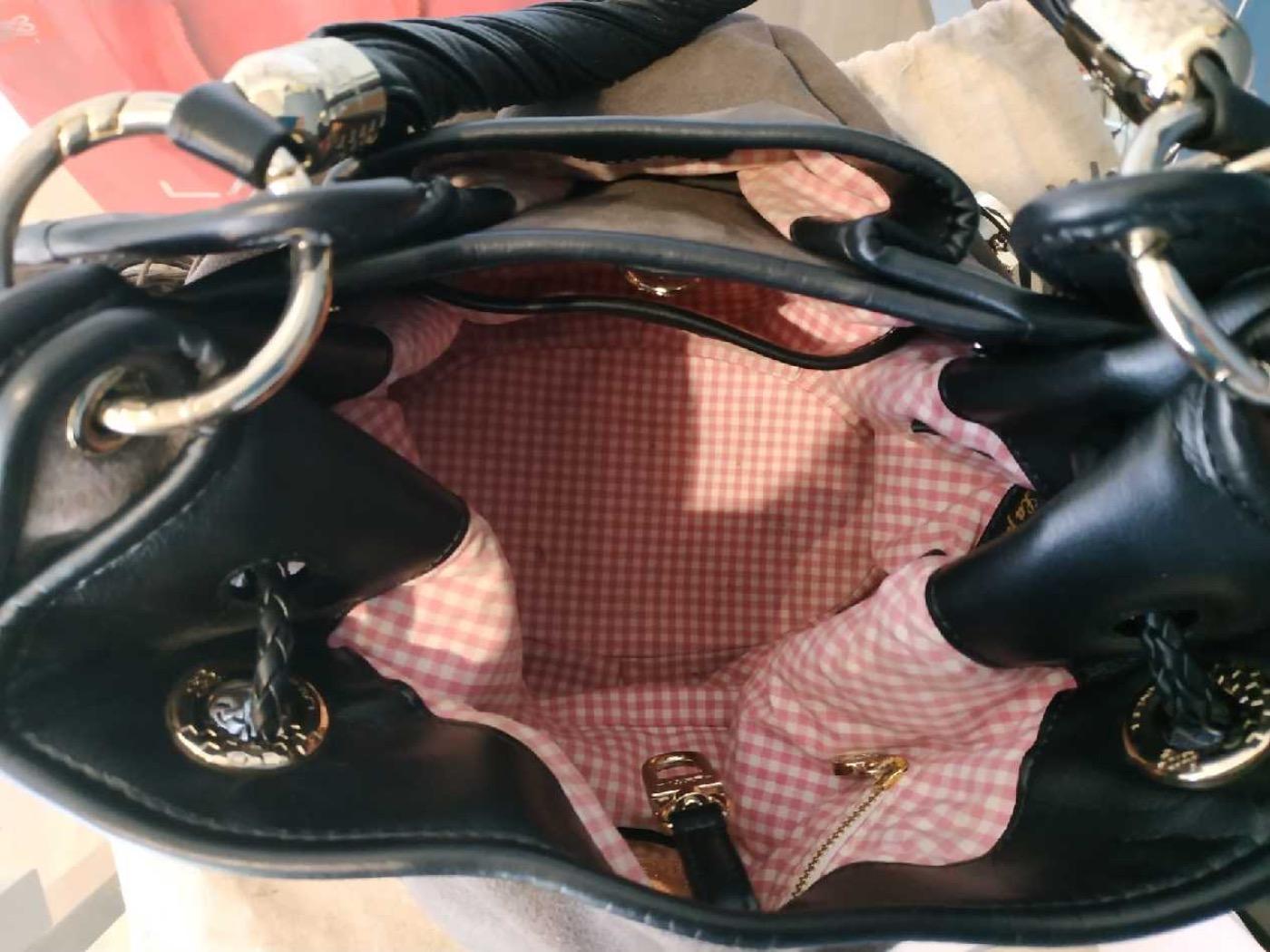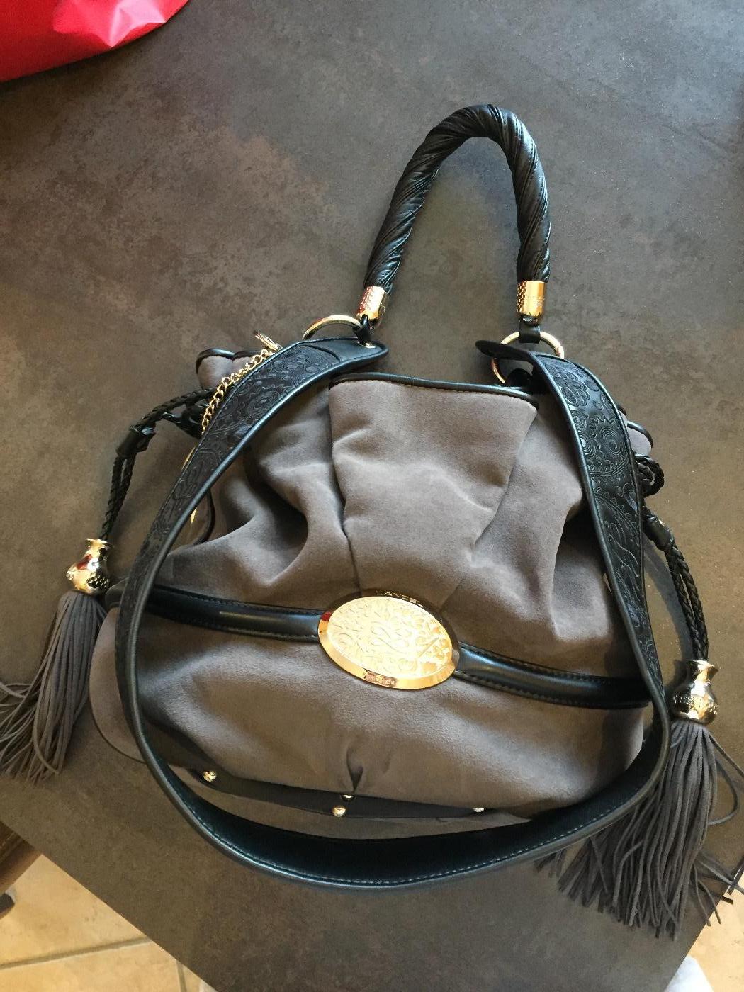 Très beau sac Lancel, modèle Brigitte Bardot en alcantara gris foncé.