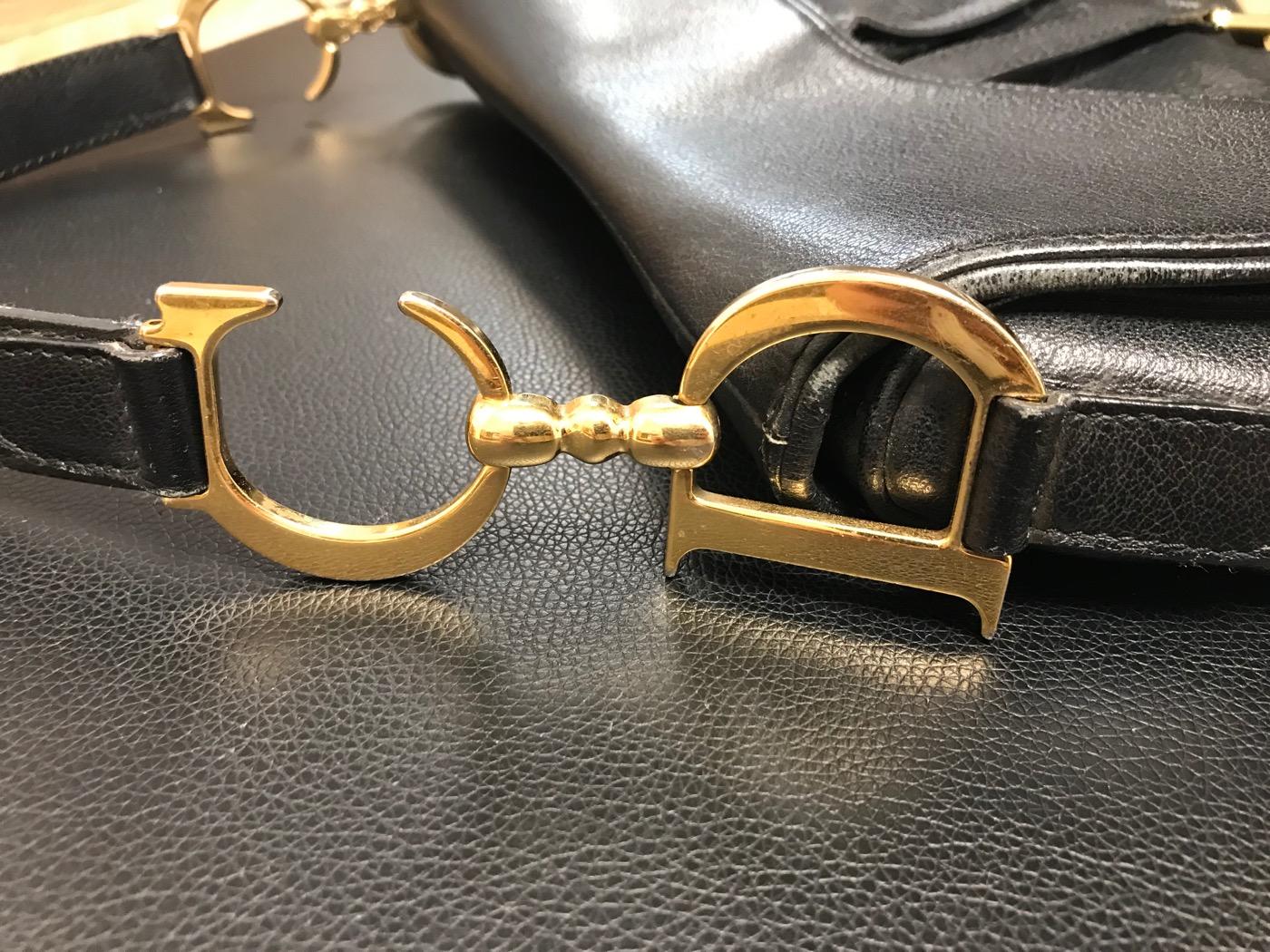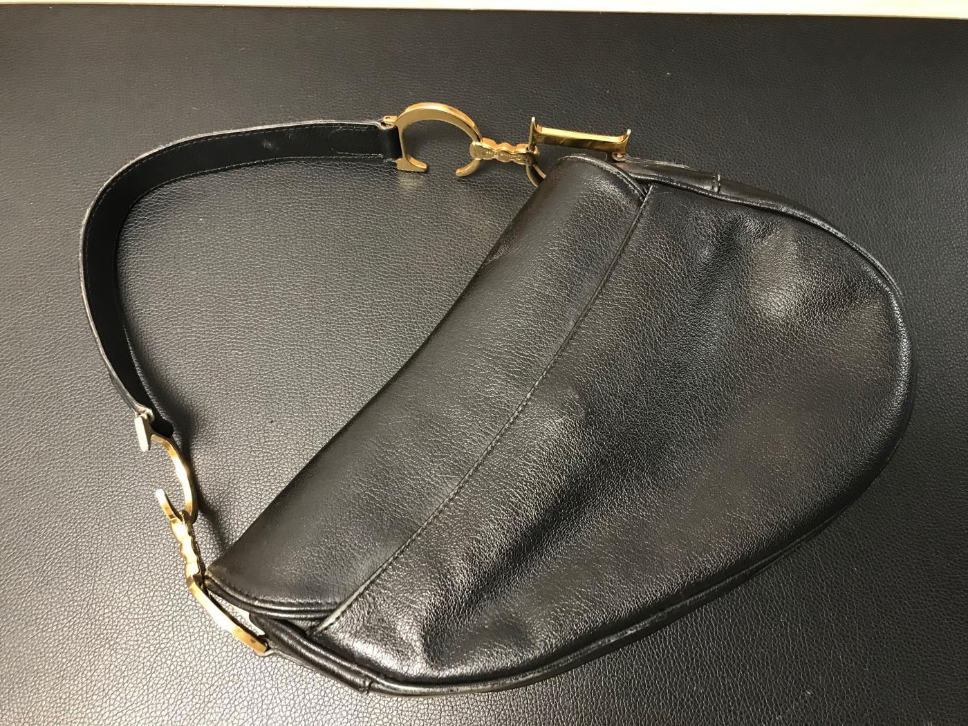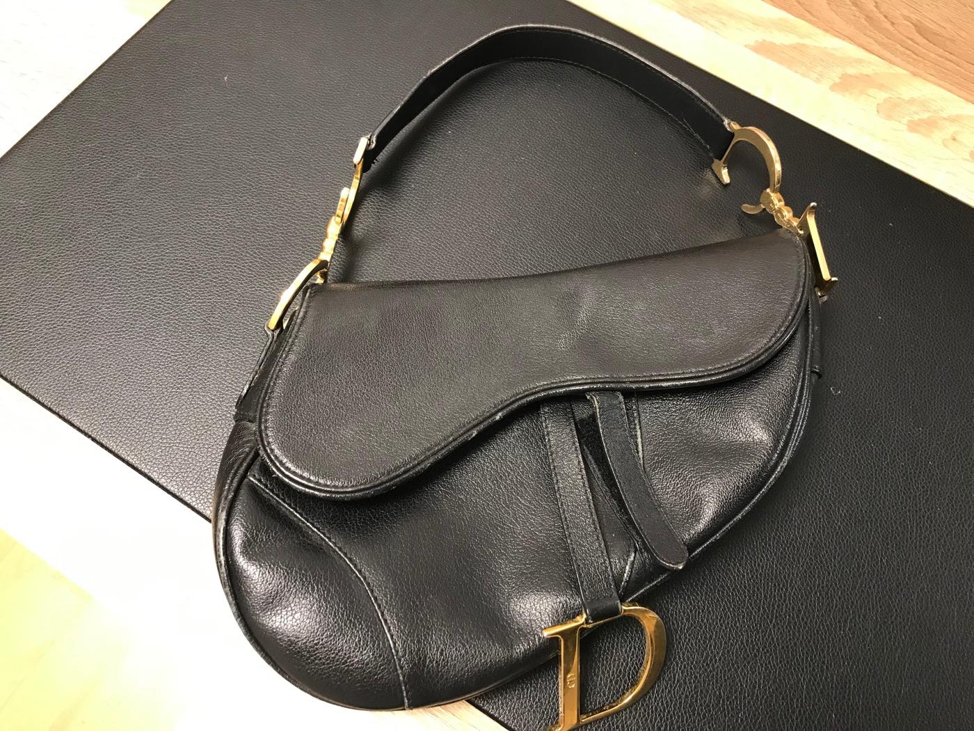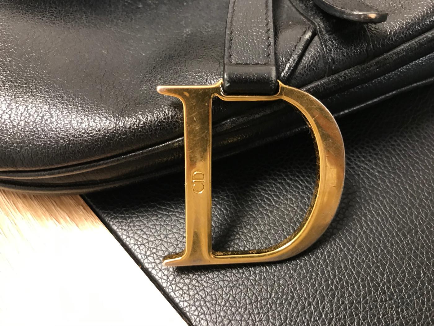 Magnifique sac DIOR modèle SADDLE En cuir noir et bijouterie dorée En bon état général ,légères traces sur le cuir et un coin usé(voir photo) 28cm x18 cm
